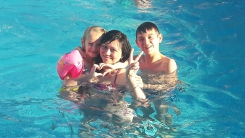 В особенности хочу отметить теплый бассейн! В мае и в сентябре (в конце) это будет очень важно! Здесь подогрев — реальный! От воды пар даже виднеется! По температуре около ~ 28 градусов — что даже очень очень много!